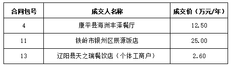 遼寧省高速公路高花、新民和康平等12個服務區餐廳經營招商項目(項目編號:RHZB0320-2025)評審工作于2025年11月20日在遼寧仁合項目管理有限公司會議室結束。成交候選人公示按規定程序已結束,招商人依據評審小組向招商人提交的評審報告確定成交人,公告期至2025年12月15日結束,現將成交結果公告如下: